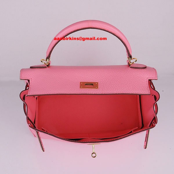 Hermès Kelly 32cm Togo Bőr 6108 Cseresznye Rózsaszín Arany
