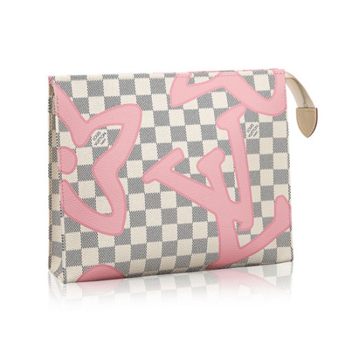 A sikkes, praktikus piperetáska friss, nőies nyári hangulatot kölcsönöz a Damier Azur vászonnak, amelyet a Louis Vuitton archívumából adaptált, mutatós monogramnyomat borít.