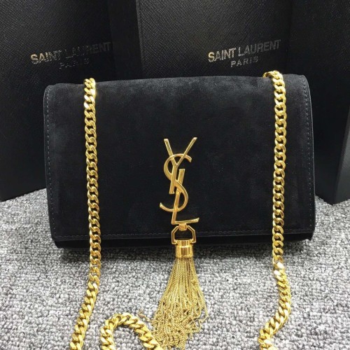 YSL bojtos láncos táska 22 cm-es velúr bőrből, fekete