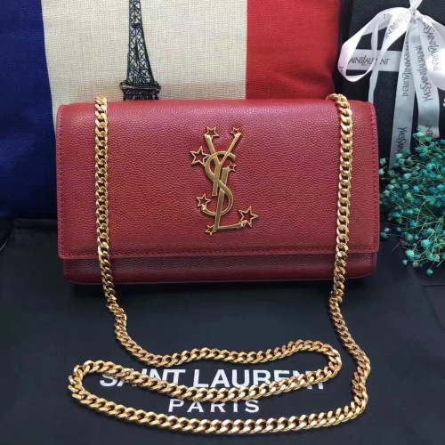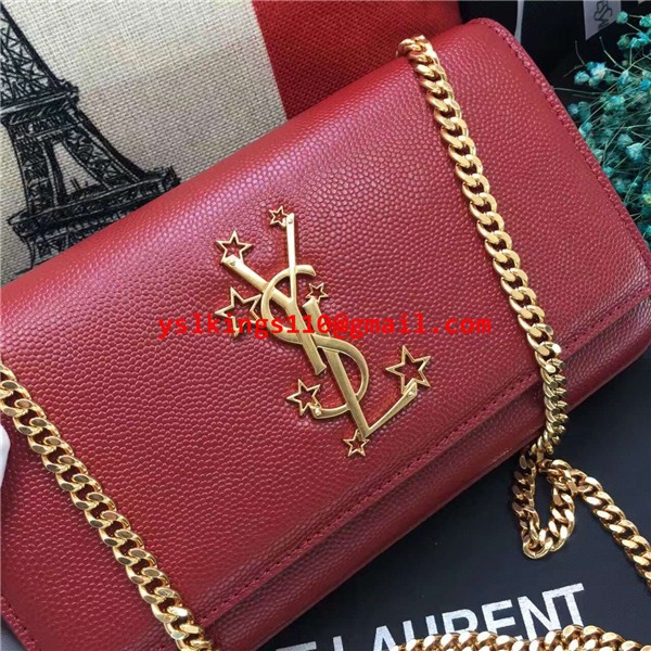 Új YSL Láncos Táska 24cm Kaviár Bőr Piros